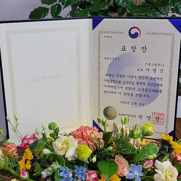 모범소상공인 부문 중소벤처기업부장관상을 수상하였습니다.